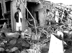 | 三月十四日,人们在阿富汗南部坎大哈省首府坎大哈市发生爆炸的地点围观。 新华社/法新 |