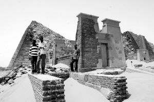 3月13日,苏丹游客在参观麦罗埃金字塔群。 麦罗埃金字塔群位于苏丹首都喀土穆以北约250公里处,建于2000多年前,是苏丹的著名古迹之一。 新华社发