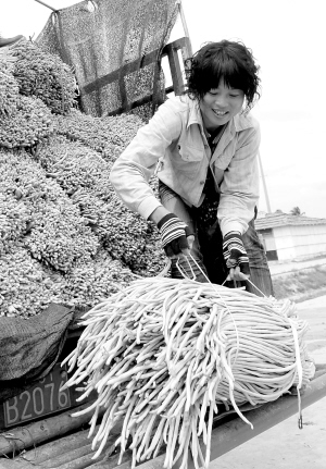 3月14日,三亚崖城镇菜农小桂将自家种植与收购的豇豆装运。她开心地说,本周价格回升很快,涨了一倍以上,这车豇豆的收购价是3.8元/公斤,送到崖城收购点批发商的收购价在4元以上。据省农业厅监测,13日豇豆产地平均收购价为4.34元/公斤。 本报记者 苏建强 摄