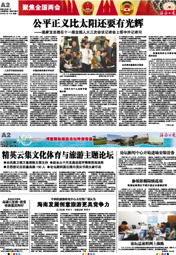 | 海南日报 聚焦全国两会 002 2010-03-151 2010年03月15日 星期一 |