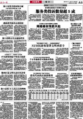 | 海南日报 本省新闻 005 2010-03-151 2010年03月15日 星期一 |