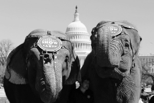 → 3月16日,在美国首都华盛顿国会大厦前,美国著名马戏团的大象参加一年一度的“游行”,为即将到来的演出季造势。 新华社/路透