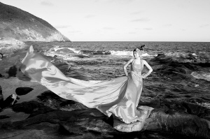 小韩知道这个地方,是因为在去年看了朋友的婚纱照,新娘雪白的婚纱迎风飘展,新郎紧紧地拥着新娘,这一对甜蜜的爱人背后,是蓝天,是大海,还有礁石、海浪,世间还有如此美的地方,小韩赶紧向朋友打听这是什么地方,朋友告诉她这是海南文昌海边,一个叫石头公园的地方,这套婚纱就是在那拍的。