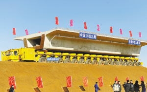 3月17日,开工仪式上展示的一台重型铁路工程机械。 当日,沈阳至丹东客运专线、丹东至大连快速铁路,新建沈阳南站、大连站,以及沈阳站和沈阳北站改造工程,在沈阳开工建设。这六大铁路工程,总投资额达到612亿元,建成后将成为振兴东北老工业基地的有力支撑。 新华社记者 任勇摄