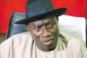 3月17日,尼日利亚代总统古德勒克·乔纳森在阿布贾宣布解散内阁,以便他组建新内阁,加强其执政的有效性。尼总统奥马鲁·亚拉杜瓦去年11月23日前往沙特阿拉伯治病,乔纳森今年2月9日根据国民议会决议出任代总统。这是乔纳森的资料照片。 新华社/法新
