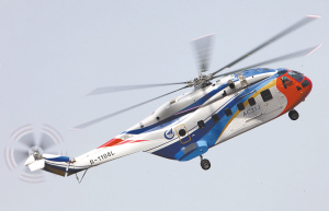 | AC313大型民用直升机在首飞中进行高难飞行动作表演。 新华社发 |