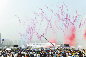 致辞后,全体嘉宾移步到游艇码头参加启动仪式。在彩烟余绕的喜庆气氛中,一些嘉宾随后受邀登上游艇,亲身体验乘坐游艇游弋大海的自由和轻松。
