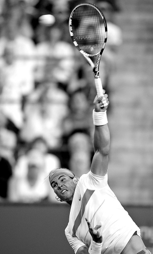 北京时间3月19日,在印第安韦尔斯网球赛男单四分之一决赛中,西班牙选手纳达尔以2比0战胜捷克选手贝尔迪赫,晋级四强。纳达尔在半决赛中将对阵克罗地亚老将柳比西奇。图为纳达尔在比赛中发球。