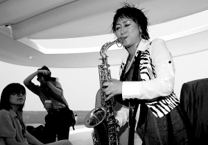 ↑ 3月19日,2010海口游艇经济主题论坛召开,部分贵宾上游艇出海试乘体验。图为游艇上的萨克斯演奏。 本报记者 林萌 摄