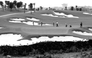 | ↑ 3月19日上午,2010海口高尔夫与旅游主题论坛活动之一———高尔夫明星嘉宾配对赛在观澜湖火山岩高尔夫球场举行。海口观澜湖球场座落在广袤的火山岩地貌带,四周是一望无际的黑色裸岩,岩石嶙峋,点缀着古老的树林、原生态湿地和人工湖泊,被世界高尔夫球界人士誉为“绝对世界顶级”。 本报记者 宋国强 摄 |
