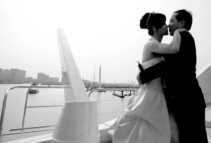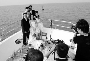 下午4时许,仪式结束,新人乘艇出海。夕阳西下,万顷碧海,波光潋滟,海风清凉。这对新人兴奋而激动地独享着这片海上风光,感受着天地间无言的大爱。