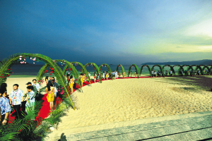 | 宾客沿着美丽的亚龙湾步入开幕礼会场。 |