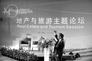 | ↑ 3月20日,地产与旅游主题论坛会上,嘉宾在交流。 |