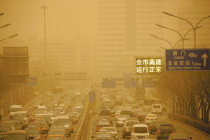 据中央气象台监测,19日,中国北方地区遭遇了今年以来最强的沙尘天气过程。据监测资料表明,从19日晚上到20日凌晨,新疆南部、青海东北部、甘肃南部、陕西北部、宁夏、山西、河北中西部、内蒙古中西部出现沙尘天气,其中,内蒙古呼和浩特、吉兰太出现了强沙尘暴。