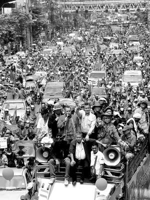 3月20日,支持泰国前总理他信的“红衫军”在泰国首都曼谷举行游街示威活动,要求政府解散国会下议院。泰国总理说政府和“红衫军”代表将讨论和谈框架。新华社/路透