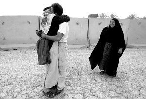| 2009年5月1日,一名刚刚出狱的伊拉克男子在巴格达的监狱外与父亲紧紧相拥,旁边是他的母亲。 新华社发 |