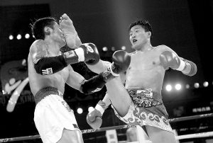 本报讯 3月20日晚,第五届国际武术搏击王争霸赛———“龙虎争霸”2010年中泰拳王争霸赛进入第二比赛日。在去年中泰比赛中KO(击倒)蓝桑坤从而名声大噪的张开印率先亮相,在与泰国“湄南神鄂”图温坦的较量中,张开印战术运用得当,在与对手打满五回合后,以点数优势获胜。