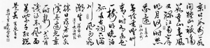 ←宋诗三首 行书横幅 京口瓜洲一水间,钟山只隔数重山。春风又绿江南岸,明月何时照我还。 ———王安石《泊船瓜州》 春阴垂野草青青,时有幽花一树明。晚泊孤舟古祠下,满川风雨看潮生。 ———苏舜饮《淮中晚泊犊头》 胜日寻芳泗水滨,无边光景一时新。等闲识得东风面,万紫千红总是春。 ———朱熹《春日》