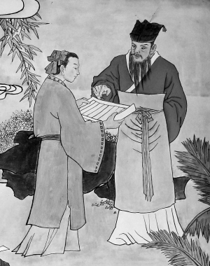 据《琼山县志》记载:姜唐佐,字君弼,琼山人。苏东坡赞其“文气雄伟磊落”、“有中州人士之风”。坡翁曾书赠诗联,勉其励志,苏辙《栾城集·补子瞻赠姜唐佐秀才诗叙》记有此事。诗叙云:“兄子瞻谪居儋耳,琼州进士姜唐佐往从之游……赠之诗……且告之曰:‘子异日登科,当为子成此篇。’”后来,姜唐佐果然乡试登科。