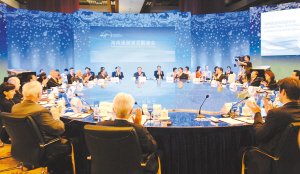 | 3月20日,海南旅游宣言圆桌会在丽斯卡尔顿酒店举行。图为各国嘉宾鼓掌通过《海南旅游宣言》。 本报记者 苏建强 摄 |