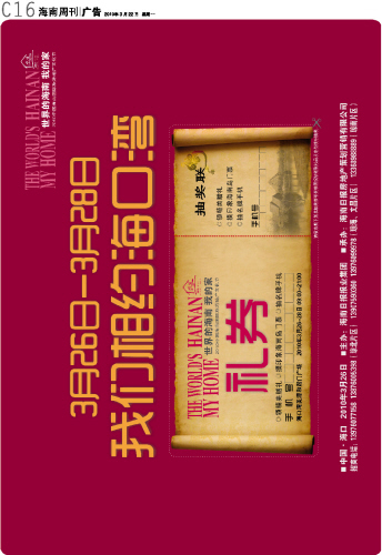 | 海南日报 海南周刊广告 032 2010-03-221 2010年03月22日 星期一 |