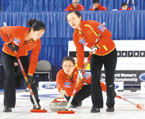 23日,在世界女子冰壶锦标赛循环赛第四轮比赛中,中国队以8:2击败拉脱维亚队,赢得首场胜利。在接下来的一场比赛中,中国队9:10惜败加拿大队。新华社发