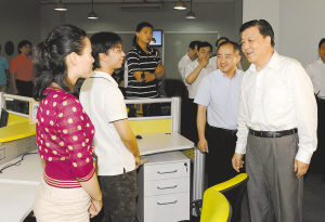 | ↑3月22日下午,刘云山视察海南广播电视总台。 |