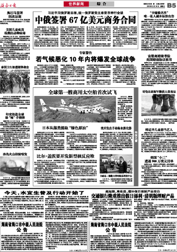 海南日报 世界新闻 013 2010-03-241 2010年03月24日 星期三