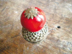 端详陈先生的这件藏饰红珊瑚,形似一个小小的红辣椒,长约5厘米,宽2厘米,一端镶有金属的顶壳,以绿松石点缀。陈先生介绍,这是与外省藏友交流所得,并非购自海南本岛,但原始产地应该就在西藏地区。