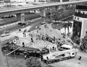 本报海口3月28日讯 (记者王勇)今天中午1时20分左右,在海口南海大道与金星路交汇处,一辆江西牌货车在行驶过程中侧翻,3人被困驾驶室,同时货车的油箱受损开始漏油,幸得路过的城管人员和群众及时救助,才避免事故进一步扩大。 据随即赶到的海口市消防支队金盘中队官兵介绍,经过紧急救援,大家从驾驶室内救出3人,其中两人受轻伤。由于害怕漏油引发火灾,该中队对现场进行了紧急处理。到下午2时40分南海大道与金星路交汇处恢复通车。