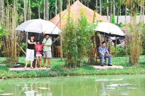 游客在品尝农家菜后,伸出大拇指表示称赞。小郑说,这批客人已经在三亚呆了一个星期,昨天,有客人提出要品尝乡村风味,于是,他就想到了兰天。小郑告诉记者说,富有特色的文门村农家乐会受到更多游客欢迎。