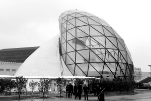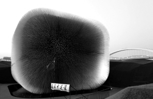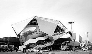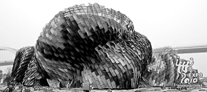 占地2000平方米的以色列馆就似一个微微打开的贝壳,又好像两只搭握环抱在一起的手。由于两部分建筑分别采用了石块和玻璃两类反差鲜明的建材,因此,从特定角度观察这座流线型展馆,又有着太极阴阳的东方文化意蕴。由于造型特殊,建设难度很大。