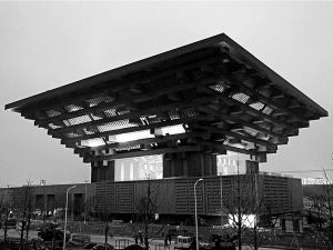 中国馆极富中国建筑文化特色。“斗冠”造型以及外立面覆以“叠篆文字”的构思,将无数中国人对世博会的憧憬和梦想寄托在了独特的建筑语言之中。