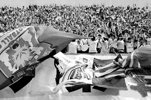 | 西安是中超的金牌球市。图为陕西中建队在西安主场与大连实德队的比赛中,助威声响彻赛场。 小新发 |