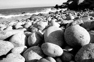 天空略有薄云,地上海风轻抚,当站在这些卵石之间,仿佛感觉走进一个曼妙的童话世界。无法去形容她的美丽,只能用心静静地去感触。努力地告诉自己,这些都是真实的存在。一波波海浪从大海走来,慢慢地消退在石头之间,不见汹涌奔腾之状,却丝毫不妨碍眼前景观大气磅礴之势。