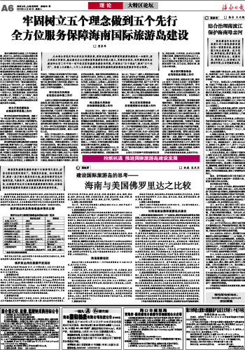 1、海南国际旅游岛建设要有一个飞跃发展,需要有系统的战略性思考的支撑。从上述比较不难看出,海南岛与佛罗里达州的自然条件相似,现时期海南的旅游特点与佛罗里达州早期的旅游也非常相似,游客以观光及享受自然风景为主,但这样的旅游开发已经远远不能满足国际游客对旅游的需求。根据“国际旅游岛”旅游发展战略,海南将用20年时间建成世界一流的国际旅游岛。实现这个目标,首先要解决谁是建设国际旅游岛主体的战略问题。
