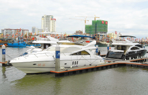 20余艘参加“海天盛筵”的游艇陆续抵达鸿洲国际游艇码头。 本报记者 苏建强 摄