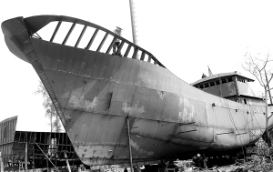 | 南海现代渔业公司建造的一艘200吨铁船。 本报记者 苏晓杰 摄 |