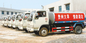 3月29日,湖北省向贵州灾区捐赠10台抗旱送水车捐赠交接仪式在贵阳举行。目前10省(市)已落实对口帮扶的技术队伍4支、送水车10辆、水泵655套、发电机79套以及设备购置资金数百万元。 新华社记者 杨洪涛 摄