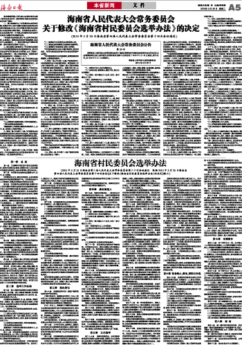 海南省人民代表大会常务委员会关于修改《海南省村民委员会选举办法》的决定