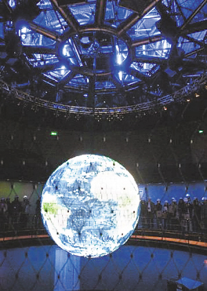 2010年上海世博会德国馆的“镇馆之宝”,当推悬挂于“城市动力之源”展厅的一颗重达1.23吨的金属球。