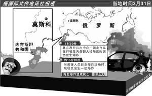 | 3月31日,在俄达吉斯坦共和国基兹利亚尔市,法医与安全人员在爆炸现场展开工作。新华社/法新 |