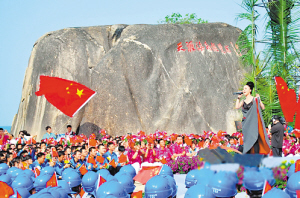 本报三亚3月31日电(见习记者李佳飞 记者郭景水)今天上午,三亚天涯海角景区沙滩广场人头攒动,中央电视台综艺频道“激情广场爱国歌曲大家唱”海南三亚篇大型演唱会在此举行。面对碧波荡漾的海面、洁白温软的沙滩,央视《激情广场》栏目主持人刘璐不禁赞叹:“三亚的海湾真美!”