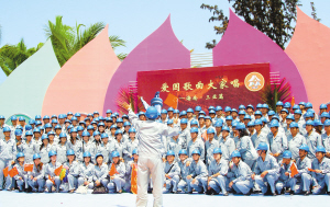上午9时,演唱会准时开场。四色莲花背景的舞台上,一曲《盛世欢歌》揭开热闹欢腾的序幕。脍炙人口的经典歌曲《外婆的澎湖湾》、《大海啊故乡》、《五星红旗》、《超越梦想》次第响起,不时掀起全场两千余名观众跟唱的热潮。