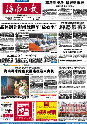 海南日报 头版 001 2010-04-011 2010年04月01日 星期四
