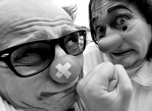 4月1日,装扮成小丑的居民在乌克兰首都基辅城中参加传统的愚人节游行。