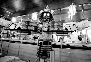 这家日本餐馆是泰国首家拥有机器人服务员的餐馆,顾客可以通过电子触摸屏进行点菜,机器人则会带来相应的服务。机器人服务员能有节奏地跳舞,还可以自动到餐桌为客人收走空盘子。 新华社/法新