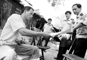 4月2日上午,琼山区府城丁村,村民签字后在现场领到了自拆奖励款。 本栏照片由本报记者张杰摄