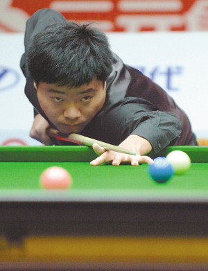 | 丁俊晖在中国公开赛四分之一决赛中。 新华社发