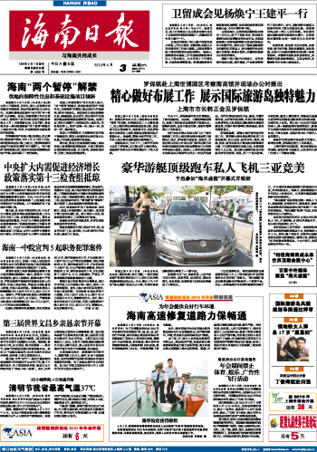 海南日报 头版 001 2010-04-031 2010年04月03日 星期六